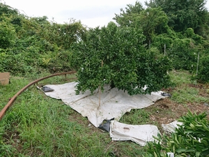 やまもと農園では、8月の下旬頃にマルチと呼ばれるシートを木の根元に敷き、木が水分を吸収しにくくなるようにします。そうやって木にストレスをかけることで、糖度が増すようにします。