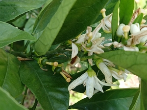 みかんは一つの花に雄しべと雌しべの両方を持っているので虫等に受粉をしてもらう必要がありません。