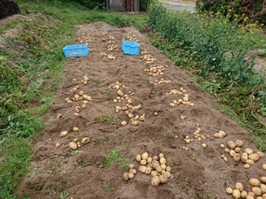 家庭菜園の畑を見に行くと、じゃがいもの葉が黄色くなってましたので収穫をしました。これは、売り物ではなく自宅で食べるようです。