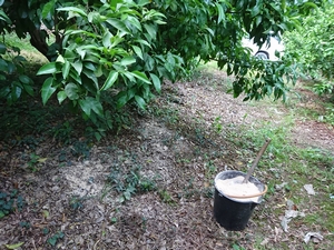 みかんの実の生理落下もほぼ終わり、果実の肥大促進のためもあり夏の肥料を散布しました。