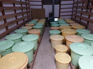 ついにしそもみが終了しました。今日は、助っ人に4人も来ていただいて一気に15樽分のシソもみを行いました。助っ人の皆様ありがとうございました。合計で41樽にシソを入れ終わりました。