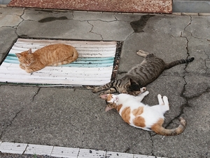 余談ですが、この試験センターにはたくさんのネコが住み着いています。いつも建物や、道端に寝そべっています。たまに、講習中にケンカを始めて、センターの人が止めに行くこともあります(^^;