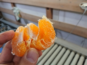 収穫してから一か月以上経過して、はるみがとても美味しい状態になりました。皮が剥きやすく、実もプリップリの状態です。あっと言う間に旬が過ぎてしまいます。みなさんお急ぎください(^^)